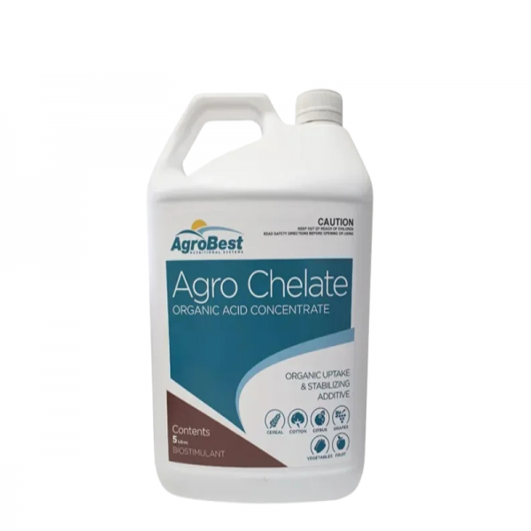 AgroBest AgroChelate - An organic acid concentrate used as a water conditioner, compatibility agent, and nutrient uptake enhancer. Agro “Chelate” is essentially a blend of organic acids and amino acids. When added to a spray tank or fertigation system, it acidifies the solution slightly (bringing pH to a plant-friendly level), chelates micronutrients (preventing them from reacting with other chemicals or getting locked up), and improves the mixing of otherwise incompatible inputs. For example, olive growers often want to tank-mix calcium with phosphorus fertilisers or combine multiple trace elements - this can cause precipitation or antagonism. AgroBest’s Chelate product helps keep such mixes stable and ensures the nutrients remain in a form the plant can absorb. It also acts as a mild biostimulant due to its amino acid content, so foliar feeds with AgroChelate might show improved uptake into leaves. In summary, Agro Chelate is used as an adjuvant to condition spray water (especially if it’s alkaline or hard), to prevent clogging and leaf burn, and to facilitate smooth absorption of nutrients through the leaf cuticle. It’s particularly useful in foliar trace element programs and fertigation systems. (Available in liquid form; e.g. 5L and 20L containers.)
