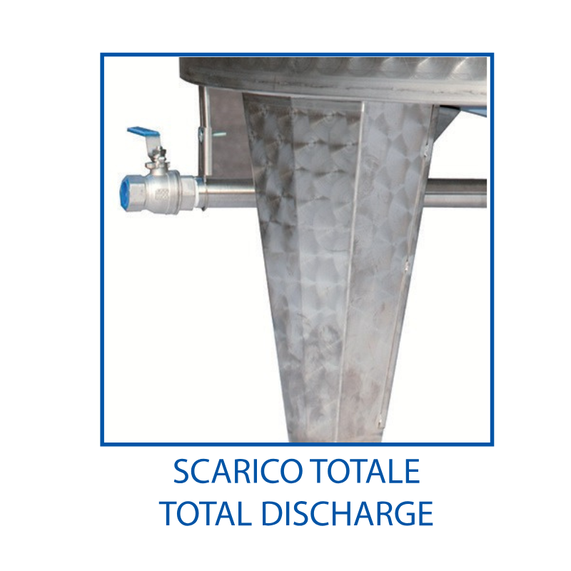 Each tank features a floating stainless-steel lid that adjusts to the liquid level, ensuring no air is trapped between the product and cover. Combined with a conical base, the design facilitates total discharge and makes cleaning fast and efficient.