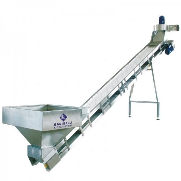 The Barigelli Belt Elevator (Mod. C/EN 600) is a heavy-duty industrial solution designed for the efficient vertical transport and primary cleaning of olives. Engineered for durability and high-capacity processing, this system features an anti-acid rubber belt with a "fish-spine" closed ring design to ensure steady product flow even at steep inclines.