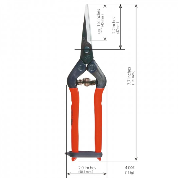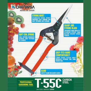 The Chikamasa T-55C Picking Snips are a staple tool for professional table grape growers and vegetable harvesters worldwide. Engineered for precision and rapid movement, these snips feature a 48mm pointed high-carbon steel blade with a specialised sap groove. This design prevents the blades from sticking during heavy use, ensuring clean, razor-sharp cuts that protect the health of your plants.