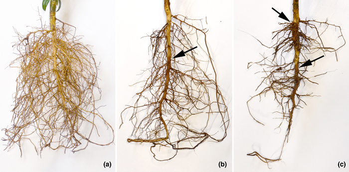 Phytophthora root rot is a destructive soil-borne disease of olive trees caused by Phytophthora species (water-mould pathogens). At least seven Phytophthora species have been identified attacking olives in Australia . These pathogens infect roots and can extend into the lower trunk, causing root decay and crown cankers that girdle the tree. If left untreated, Phytophthora root rot can kill olive trees, either through a rapid collapse or a slow decline over several seasons . The disease has been observed in many olive-growing regions worldwide, often linked to periods of excessive soil moisture.