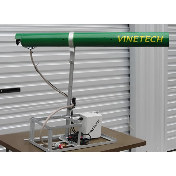 The Vinetech gun is designed for use with a 9Kg gas bottle, suspended from the centre of the tripod which stabilizes the whole unit